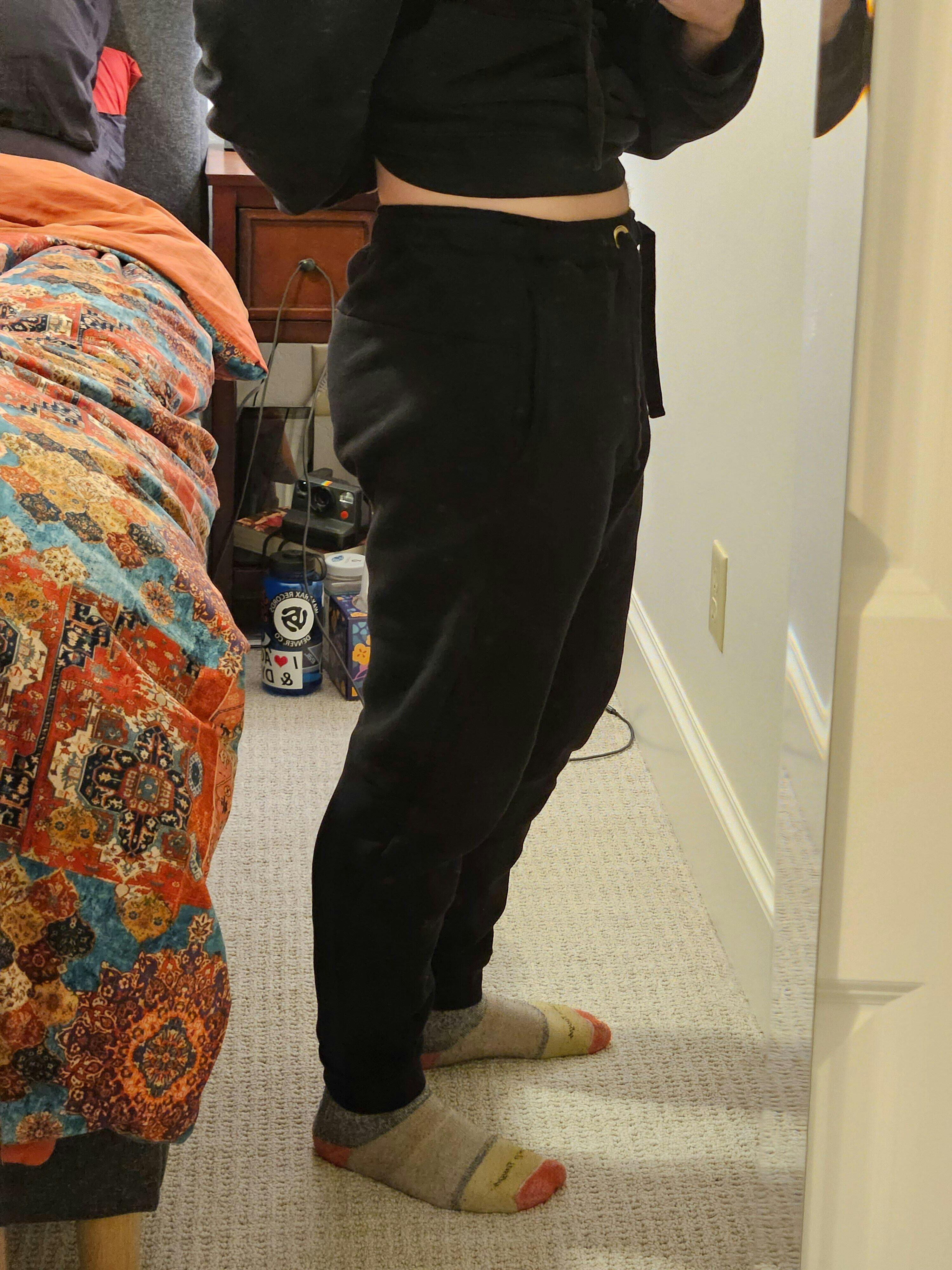 I nervously picked up some size small sweats this time, and they fit perfectly! Far more flattering fit, and much better sizing. I could actually wear these out of the house now!