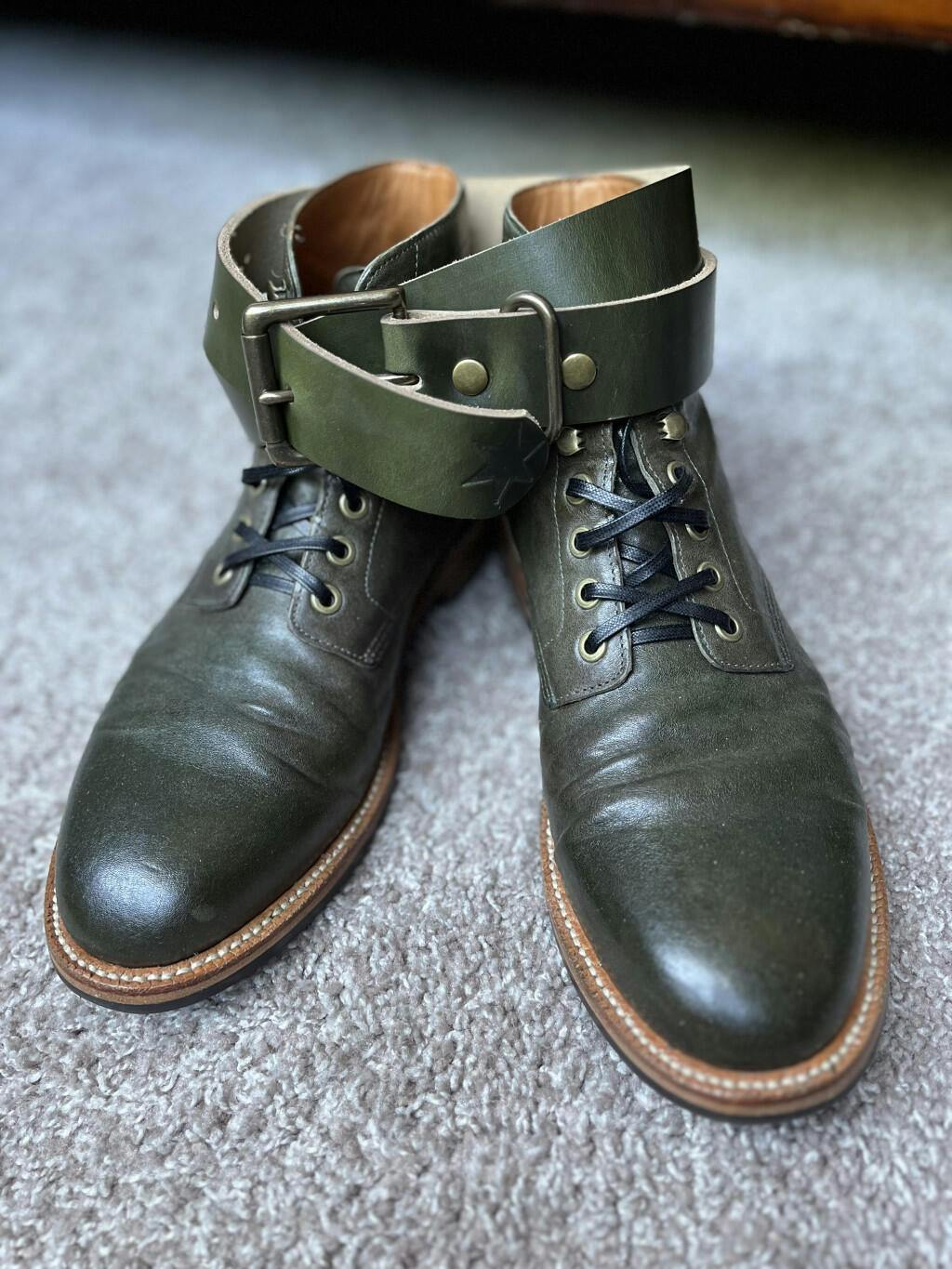 Thomas Scarborough "The olive color is unique. Nothing beats the smell of a new leather belt! And of course, it has the mark of Dearborn Denim quality in it."