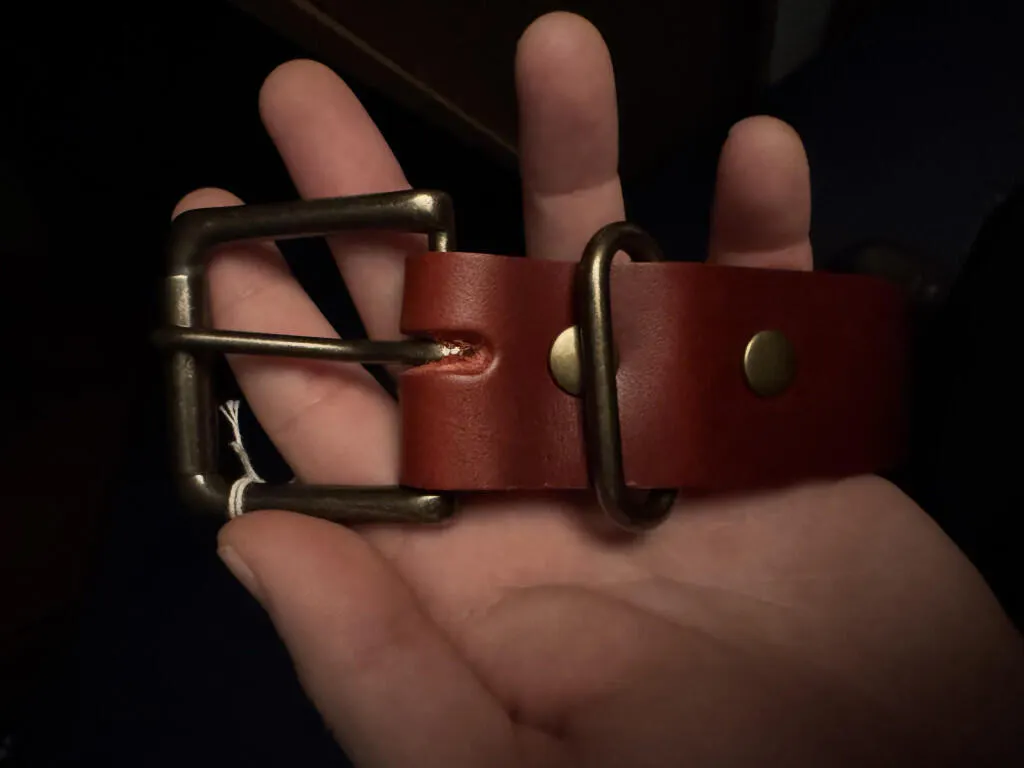 Eric "I asked for an exchange on the belt on the left because the buckle and hardware were very off center. Today I received the �new� belt. They literally sent me back the defective belt I had originally ordered. I know it�s the same belt because it has the same exact marking on the leather below the prong! Wtf????"